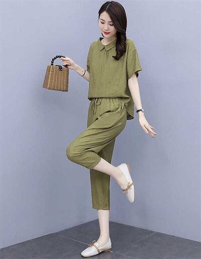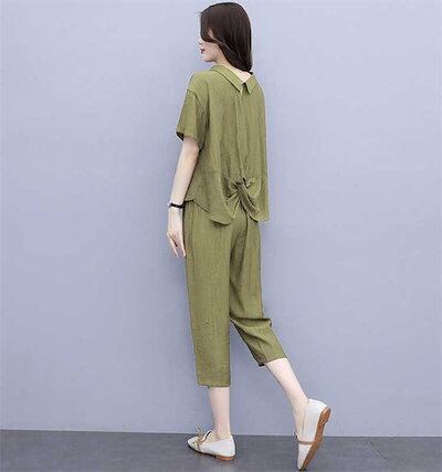 セットアップ 上下セット パンツセット 新作 パンツ 9分丈 紐 シャツ ブラウス 半袖 無地 ワイド 薄手 デザイン感 プルオーバー レディース 体型カバー 着?せ カジュアル シンプル 可愛い ゆ