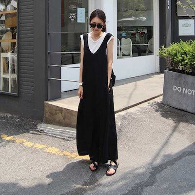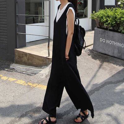 サロペット レディース 春夏 きれいめ 大人 九分丈 ロング丈 パンツ オーバーオール カジュアル かわいい おしゃれ ワイドパンツ ガウチョパンツ vネック