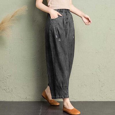 デニムパンツ レディース 大きいサイズ デニムワイドパンツ サルエルデニムパンツ ガウチョ ゆったり 着痩せ ウエストゴム 大人 カジュアル 可愛い