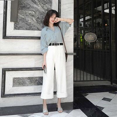レディース 上下2点セット 長袖ブラウス + ワイドレッグパンツ ハイネック カジュアル フォーマル 可愛い フェミニン きれいめ 上品 エレガント おしゃれ お出かけ オフィス お呼ばれ ブルー