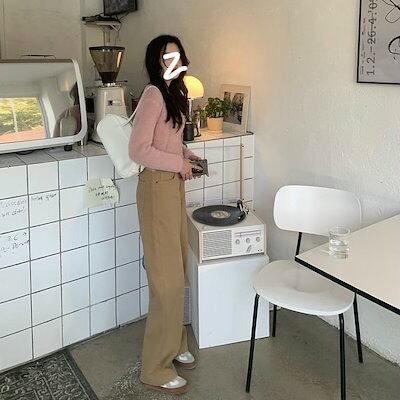 レディース カジュアルパンツ ハイウエスト ワイドパンツ ストレート ボトムス カジュアル 大人可愛い リラクシー 休日コーデ おしゃれ お出かけ デイリー ベージュ S M L サイズ