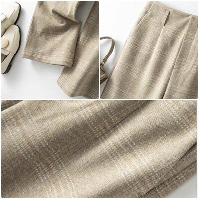 レディース ボトムス チェック ロング ワイドレッグパンツ 秋冬 カジュアル きれいめ 大人可愛い エレガント ビジネス オフィス お仕事コーデ 休日コーデ お出かけ デート デイリー ベージュ