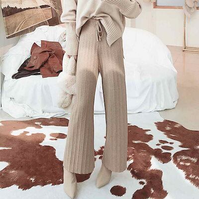 レディース ボトムス ロング ワイド パンツ プリーツ 無地 秋冬 カジュアル 大人可愛い フェミニン オフィス お出かけ デート デイリー ホワイト ブラック グレー ベージュ フリーサイズ