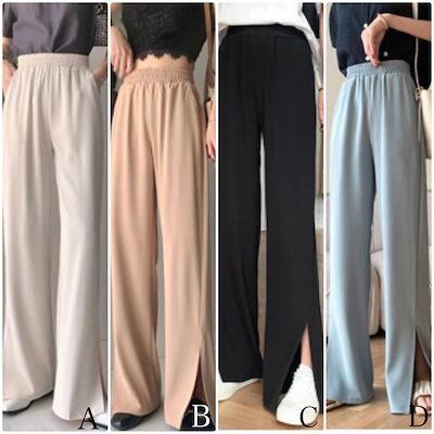 レディース ボトムス ワイド レッグ ロング パンツ 無地 春夏 カジュアル 大人可愛い スリット キレカジ オフィス お出かけ デート デイリー ホワイト ピンク ブラック ブルー XS S M L