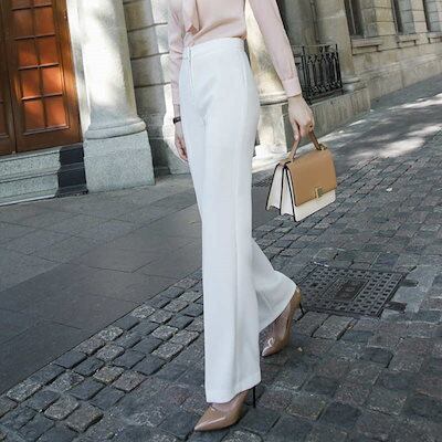 レディース ワイドレッグパンツ アンクル丈 ゆるシルエット ハイウエスト ボトムス カジュアル 可愛い フェミニン きれいめ エレガント おしゃれ お出かけ オフィス ブラック ホワイト S M L