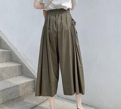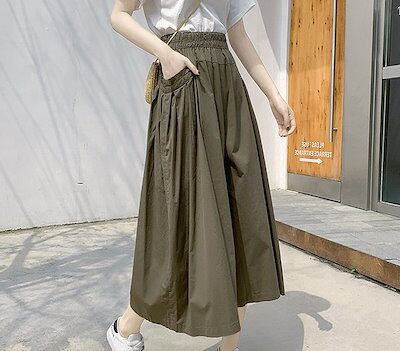 レディース ワイドレッグパンツ ハイウエスト クロップド 半端丈 ボトムス カジュアル 可愛い フェミニン きれいめ エレガント おしゃれ お出かけ オフィス デイリー カーキ ベージュ ネイビ