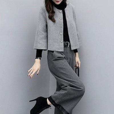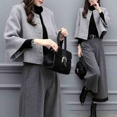 レディース 上下2点セット スーツ ワイドレッグパンツ 襟なしジャケット クロップドパンツ カジュアル フォーマル 可愛い フェミニン きれいめ 上品 エレガント おしゃれ お出かけ オフィス