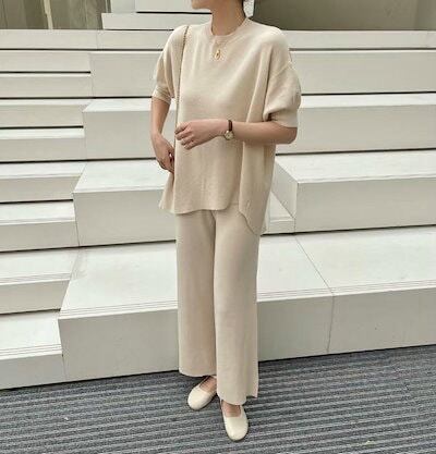 レディース 上下2点セット ニット ワイドレッグパンツ カジュアル リラクシー 可愛い フェミニン きれいめ 上品 おしゃれ お出かけ オフィス お呼ばれ グリーン ライトブルー ブラウン ベー