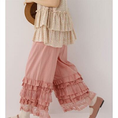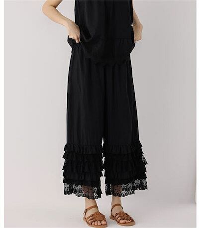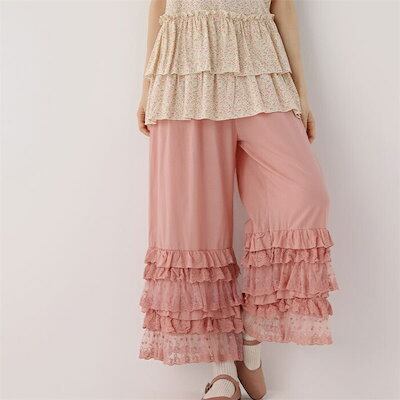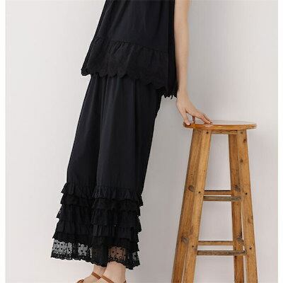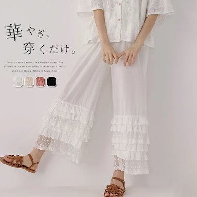 ロング ペチコート インナー スカラップ 刺繍 ペチパンツ レディース 春 夏 秋 ペチコート パンツ ロング ワンピース下 花柄刺繍 インナー 九分丈 ボトムス ワイド 下着 かわいい ナチュラル
