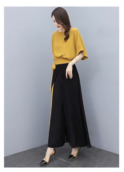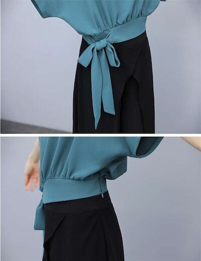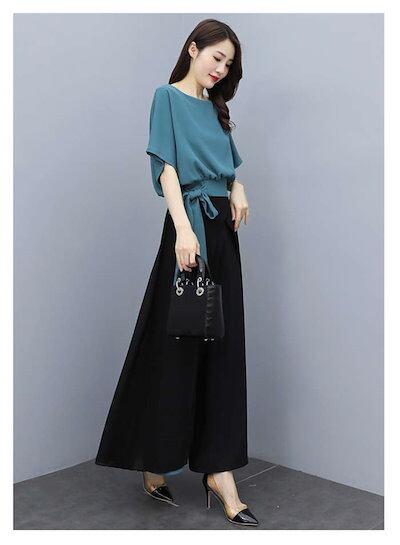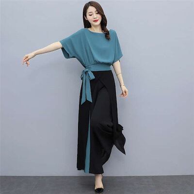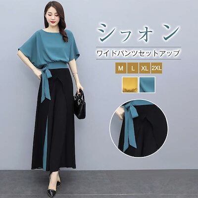 セットアップ レディース カジュアル パンツセットアップ ワイドパンツ ウエストリボン トップス パンツ 夏 ドルマンスリーブ 2点セット ボトムス 可愛い シフォン フォーマル ハイウエスト 上品