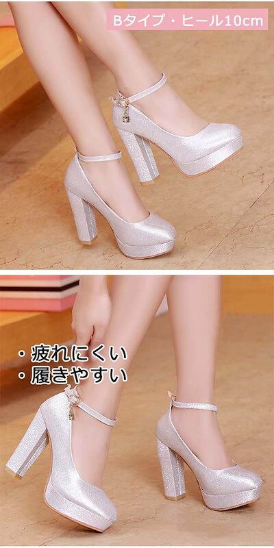 パンプス シューズ ブライダルシューズ 美脚パンプス 大きいサイズ 小さいサイズ パーティシューズ ストラップ レディース ハイヒール ローヒール 太ヒール チャンキーヒール キラキラ 結婚式 発表会