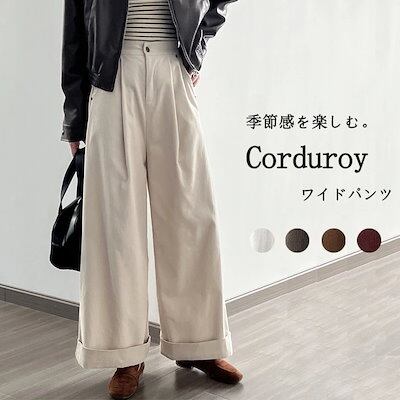 ガウ ゆったり 大きいサイズ ロングパンツ 裾折り返し ロング スカーチョ パンツ ワイド コーデュロイ ボトムス ポケット付き バックゴム ハイウェスト ワイドパンツ レディース コーデュロイパンツ