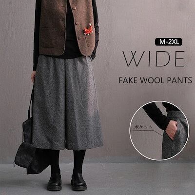 スカ ガウチョ ポケット付き バックゴム ワイド スカーチョ ふんわり 七分丈 冬 ハイウェスト ワイドパンツ ゆったり ウール パンツ 大きいサイズ レディース ガウチョパンツ 2025新品発売秋冬