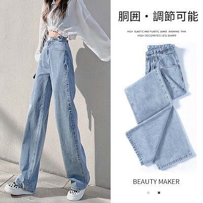 改良型 超美脚ワイドパンツ デニム ハイウエスト ウエスト調節可能 レディース ジーンズ デニムパンツ きれいめパンツ ロングパンツ 美脚 大きいサイズ 脚長効果 着痩せ パンツ