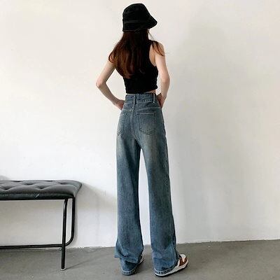 短長2タイプ人気 デニムパンツ レディース ゆったり ワイド ハイウエスト フレア ダメージ 大きいサイズ レディースロングパンツ ストレート ストレッチ スキニー ジーンズ け メガ割