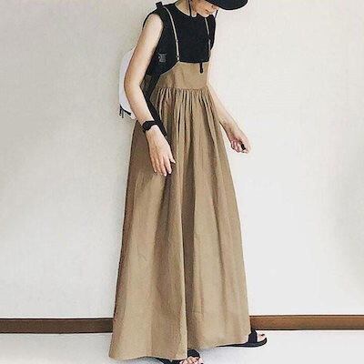 人気の新作先行発売ワイド 体型カバー 大きいサイズ レディース キャミ サロペ オールインワン キャミソール 華奢紐 スカート 短納期
