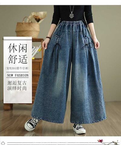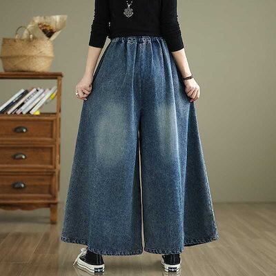「ファットガール」 2024秋冬新品 デニムパンツ 大きいサイズ 体型カバー レディース ジーンズ ゴム ワイドパンツ ロングパンツ ハイウエスト メガ割