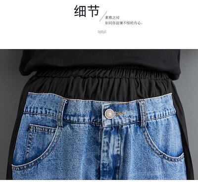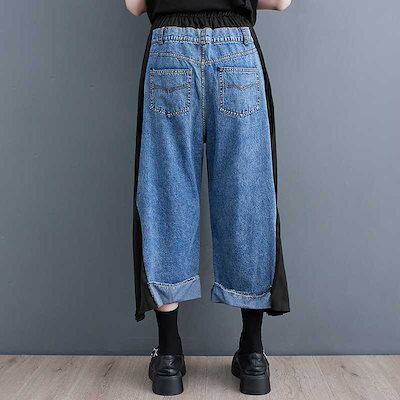 「ファットガール」 秋 九分丈 デニムパンツ ドッキング レトロ プリーツ ワイドパンツ ハイウエスト スラックス レディース ロングパンツ メガ割