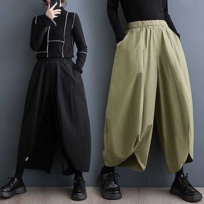 「ファットガール」 2024春夏 サルエルパンツ レディース ワイドパンツ ゴム 体型カバー ロングパンツ