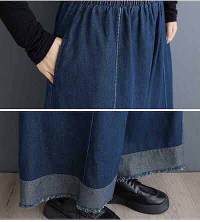 「ファットガール」 2024秋新品 デニムワイドパンツ キュロットスカート 大きいサイズ 体型カバー レディース ゴム ジーンズ メガ割