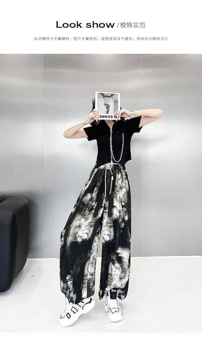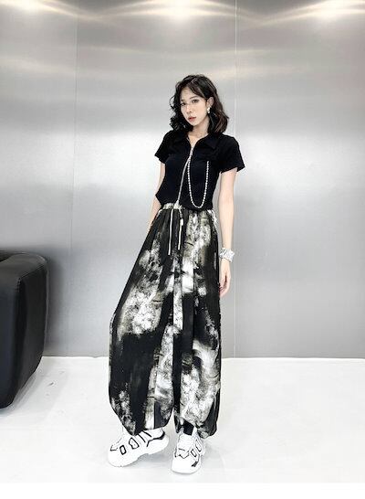 【J.Fashion】 ワイドパンツ 夏 カジュアル ゆったり 絞り染め レディース ロングパンツ