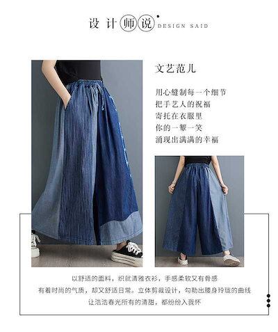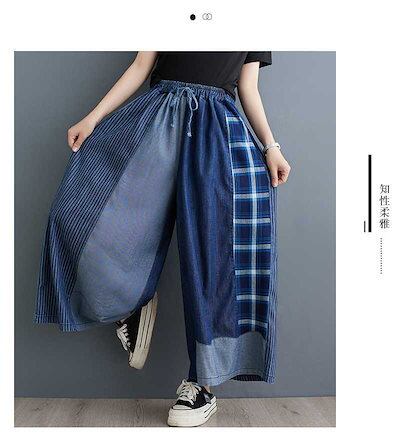 「ファットガール」 2024夏新品 レトロ デニム ドッキング ワイドパンツ フレア 大きいサイズ 巾着 ゴム 体型カバー レディース キュロットスカート ロングパンツ メガ割