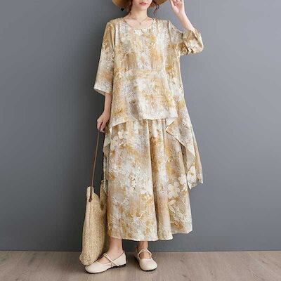 「ファットガール」 2024夏新品 上下セット ロングブラウス+ワイドパンツ 大きいサイズ 体型カバー レディース 着痩せ セットアップ メガ割