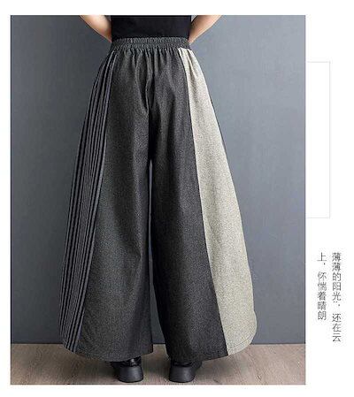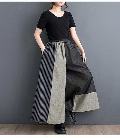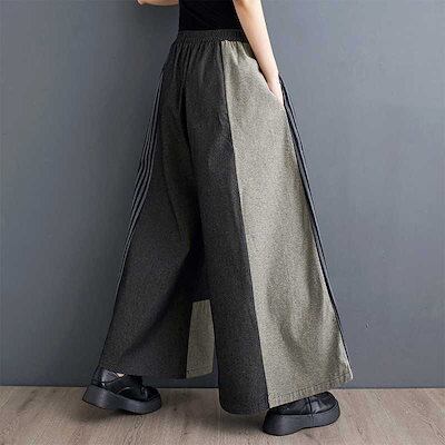 「ファットガール」 2024夏新品 デニムドッキング ワイドパンツ 大きいサイズ キュロットスカート 体型カバー ゴム レディース フレア ロングパンツ メガ割