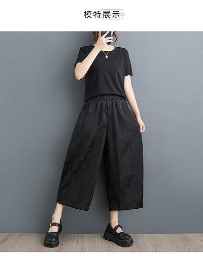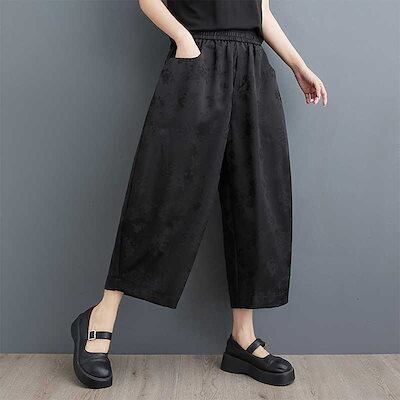 「ファットガール」 2024夏新品 九分丈 ワイドパンツ 花柄 大きいサイズ 体型カバー レディース ゴム ロングパンツ メガ割