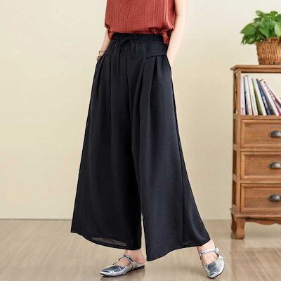 「ファットガール」 2024夏 ワイドパンツ 薄手 ゆったり ゴム 体型カバー 大きいサイズ ゆったり レディース