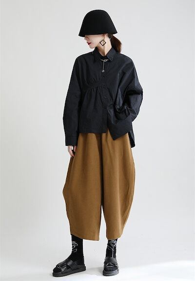 【J.Fashion】 秋冬 レトロ サルエルパンツ レディース ワイドパンツ スラックス ゆる 九分丈 厚手 レディース ロングパンツ メガ割