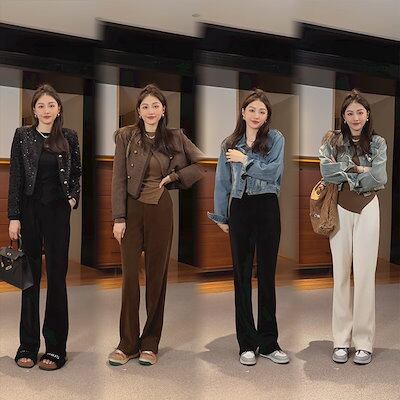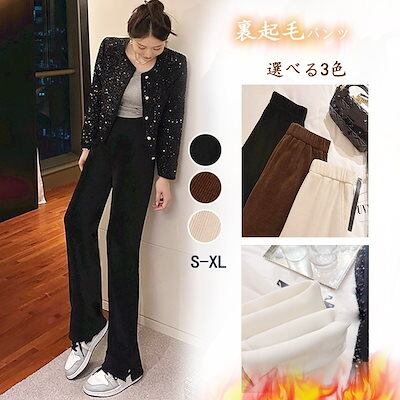 ラシャズボン 着痩せワイドパンツ スリット 裏起毛パンツ ストレートパンツ ロイワイドパンツ タイプ レディースパンツ レディースファッション コーデュロイパンツ 脚長効果!スキニーパンツ ひんやりボ