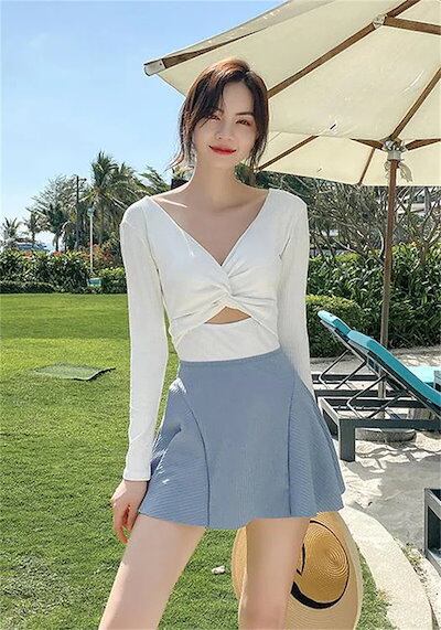 激安セール スカート 学生 平角 温泉 水泳着 快適である 連体水着 長袖 日よけします スリム sweet系 女の子 水着 レディース 可愛い 大きいサイズ 大人用 水着 体型カバー ラッシュガード