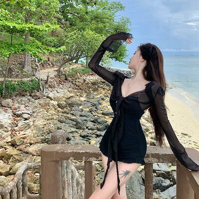 2025夏新作 ワンピース水着 スイムウェア 一体式 レディース 大きいサイズ 体型カバー 温泉 海 ビーチ スイムスカート 半袖 ?袖 ファッション水着 2025新しいセクシーなスリムフィッティ