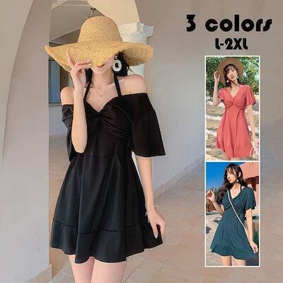 水着ワンピースレディース体型カバーオールインワン大きいサイズママ水泳服スイムウェア可愛いお洒落無地露出控えめ温泉海水浴20代30代40代3色