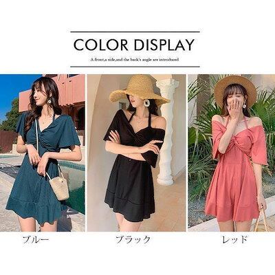 水着レディース水着ワンピース型サロペット背中出しスリム保守スイムウェアスイミング女性用温泉ビーチリゾートプール海大きいサイズ