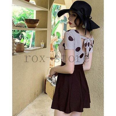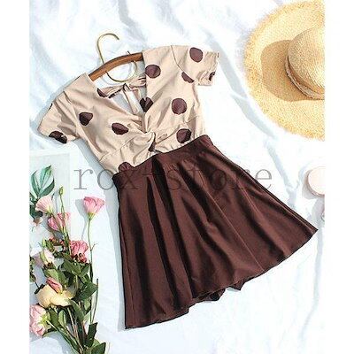 水着レディース水着半袖&スカートのワンピース水着オールインワンパッド付きノンワイヤー大きいVネック胸元バックシャン
