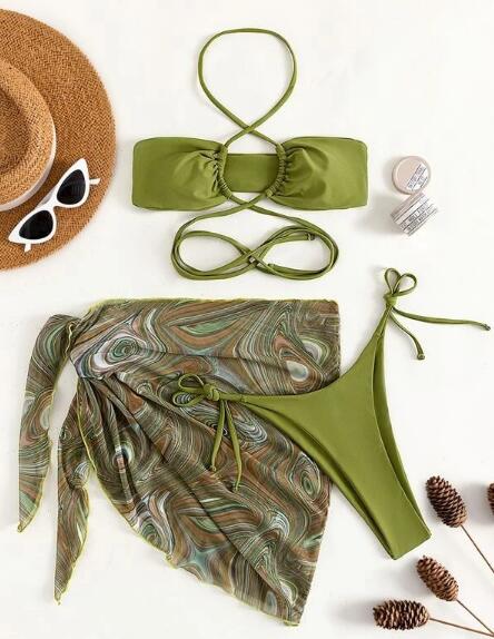 2022 Bikini 水着 韓国風 水泳 上下セット ビキニ プール 速乾 3枚セット※採寸に若干の誤差(1〜3cm)がある場合がございますので、予めご了承ください。