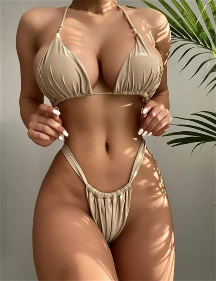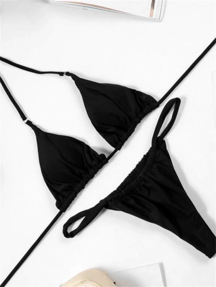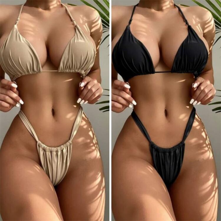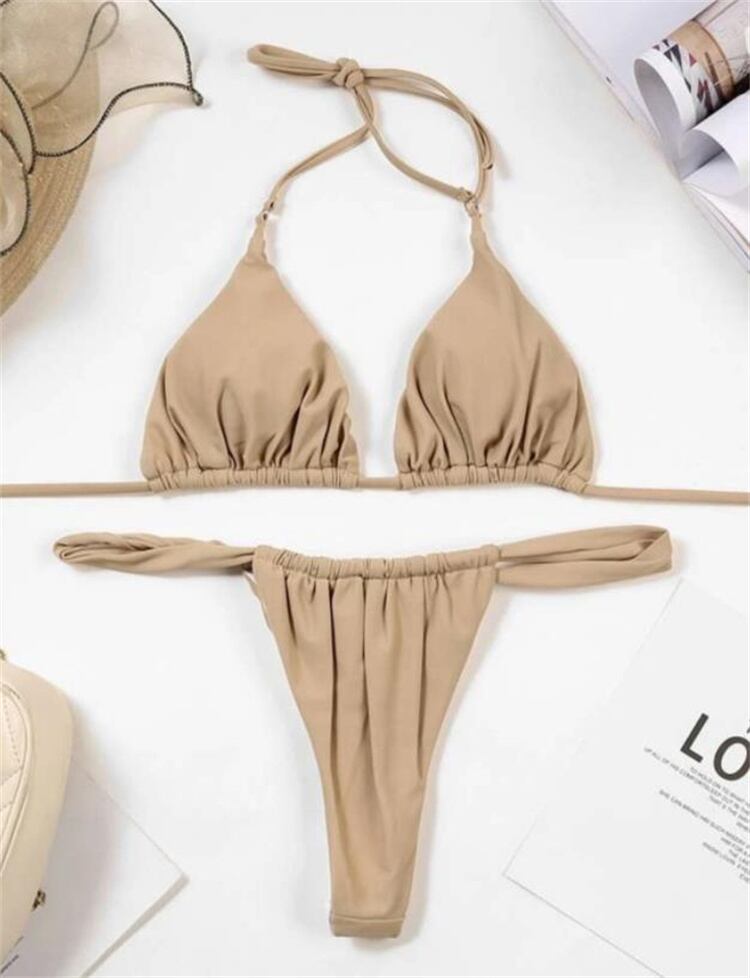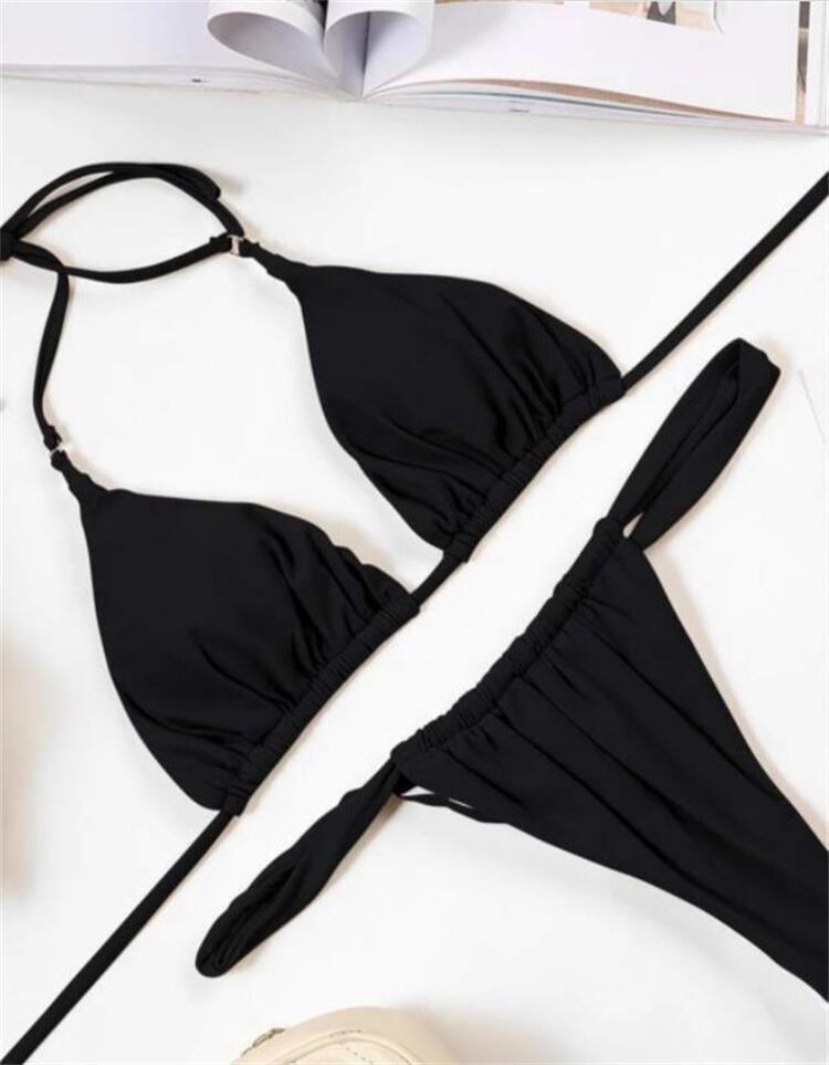 セクシー ピュアカラー スプリット ビキニ レディース 水着 スリム
