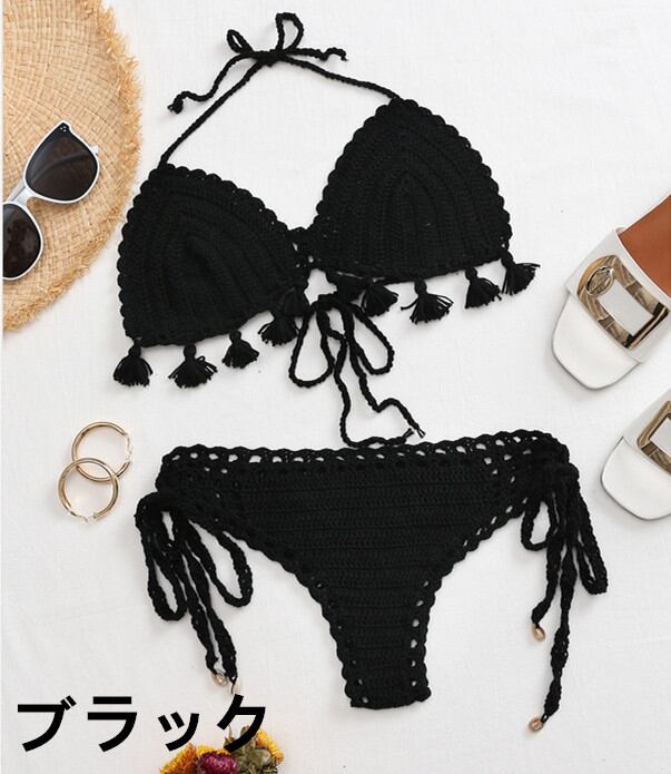リゾートにピッタリなハワイアン香るクロシェ編みビキニセット♪■素材:アクリル