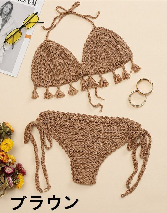 クロシェレースビキニ 水着 ニット ビキニ ビーチ プール 海 リゾート 女性 セットアップ 夏 クロシェ編み★★ 水着 レディース おしゃれ ビーチ ビキニ リゾート プール 体型カバー スリム 可愛い インスタ映え セパレート 露出控えめ 盛れるハイウエスト 韓国 日焼け対策 競泳 スイムウェア日焼け防止 スタイルアップ 着痩せ