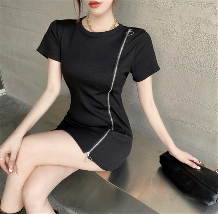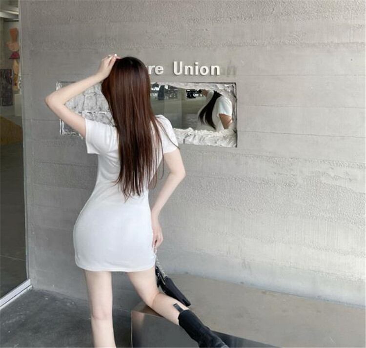 装飾 チェーン タイトスカート 半袖 デザインセンス ワンピース 気質 エレガント