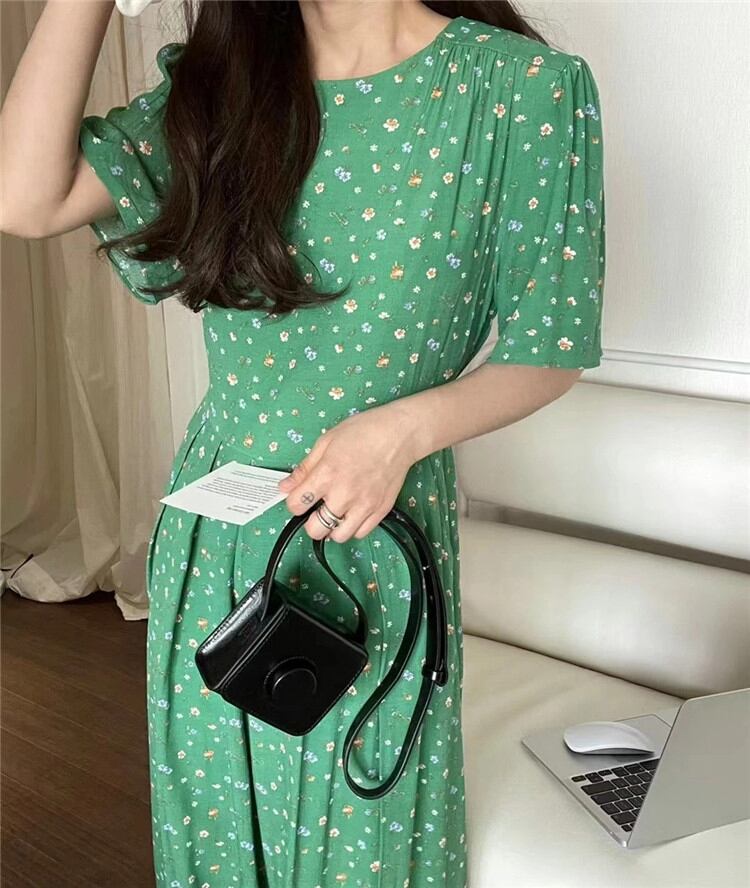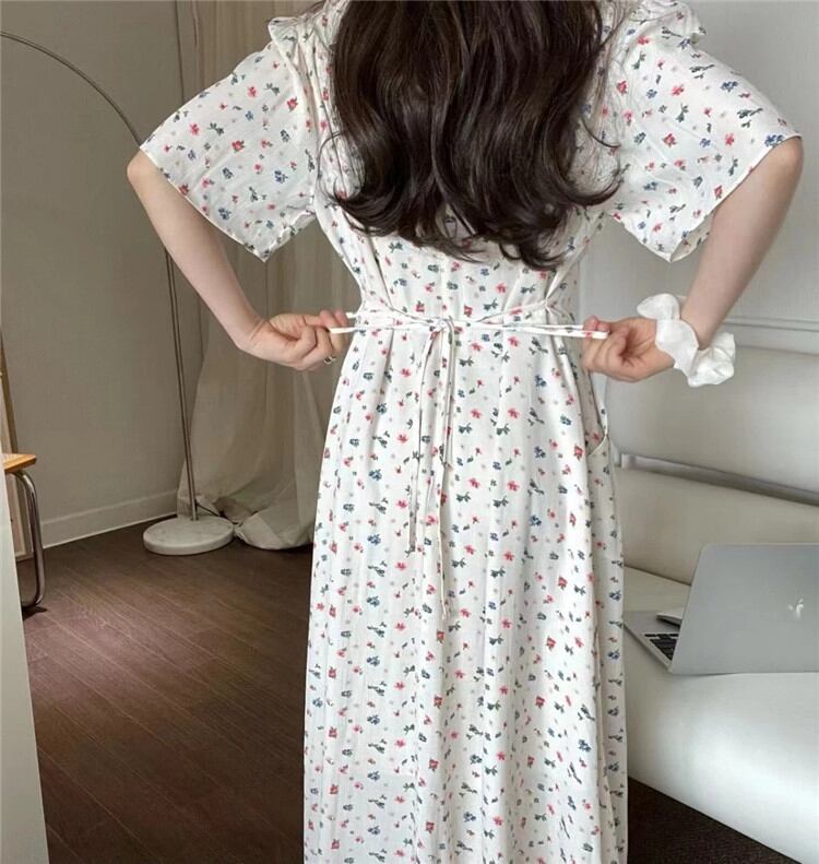 韓国 気質 フローラル ロングセクション 半袖 気高い ワンピース エレガント 百掛け