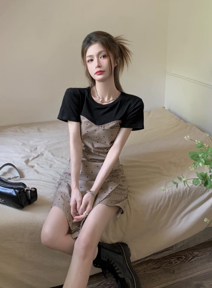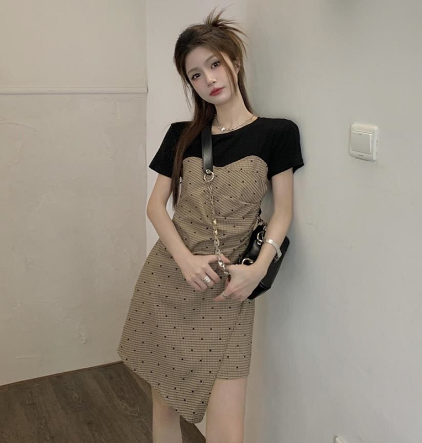 2022春夏新作 女 レディース ハイウエスト 半袖 ドット ミニ ワンピース ドレス 台型スカート S-LTREWPL36975140