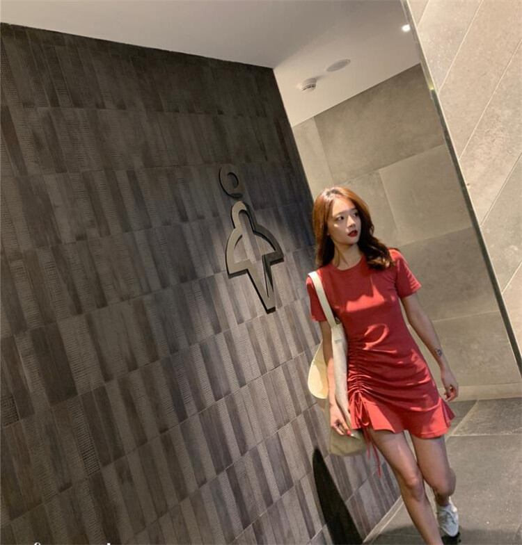 激安セール スリムフィット 半袖 ワンビース 夏 巾着 Tシャツスカート フリル ショートスカートVGFTIOK2378101