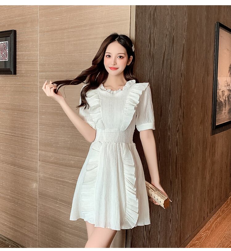 フレンチスタイル sweet系 フリル 半袖 ワンピース 初恋 夏 ピュアカラー スリム 気質