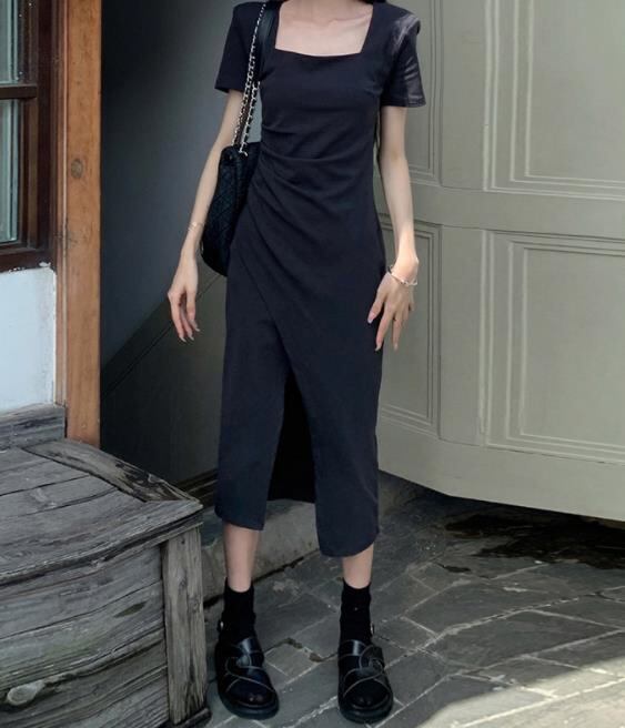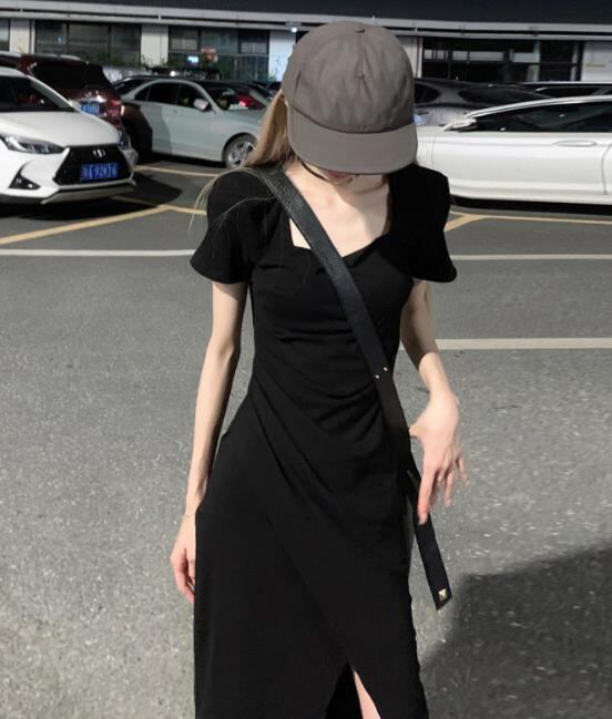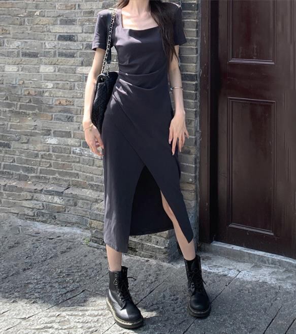 春夏新作 女 レディース ハイウエスト半袖 無地 ロング ワンピース 台型スカート S-2XLKJUY52381069