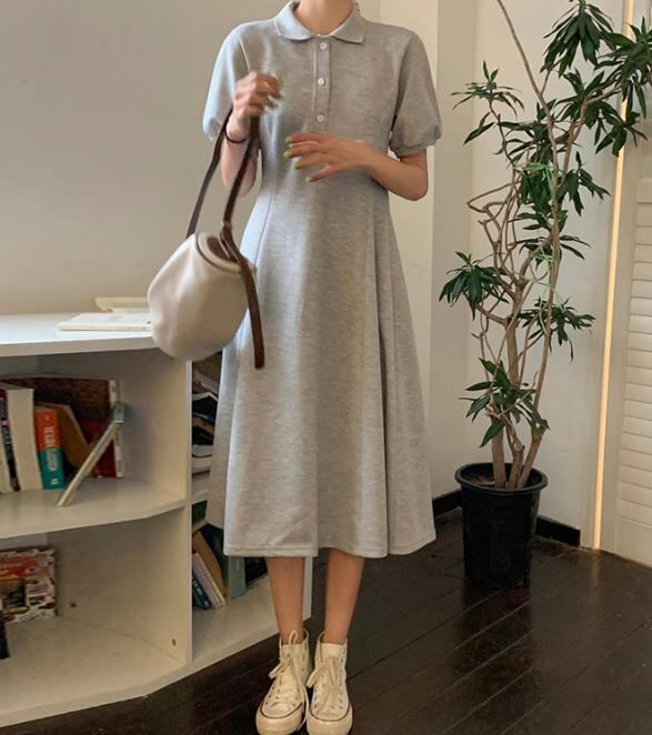 春夏新作 女 レディース ハイウエスト半袖 無地 ロング ワンピース 台型スカートKJUY5238108