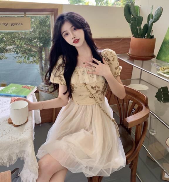 春夏新作 女 レディース ハイウエスト 半袖 チュール ミニ ワンピース ドレス 台型スカートKJUY5238119