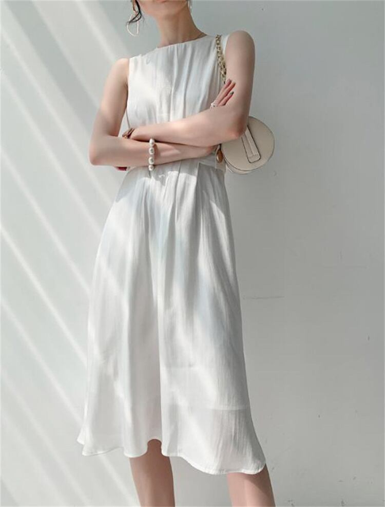 ワンピース 2024新作 春夏 気質 半袖 サテンスカート ハイウエスト ロングスカート